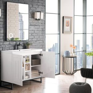 Alicante 39.5″ Bathroom Vanity, Glossy White, Matte Black