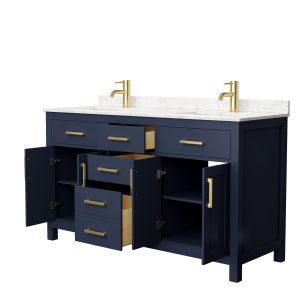 Beckett 60 Inch Double Bathroom Vanity in Dark Blue With Carrara Cultured Marble Top