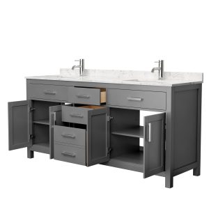 Beckett 72 Inch Double Bathroom Vanity in Dark Gray With Carrara Cultured Marble Top