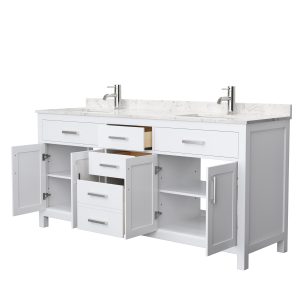 Beckett 72 Inch Double Bathroom Vanity in White With Carrara Cultured Marble Top