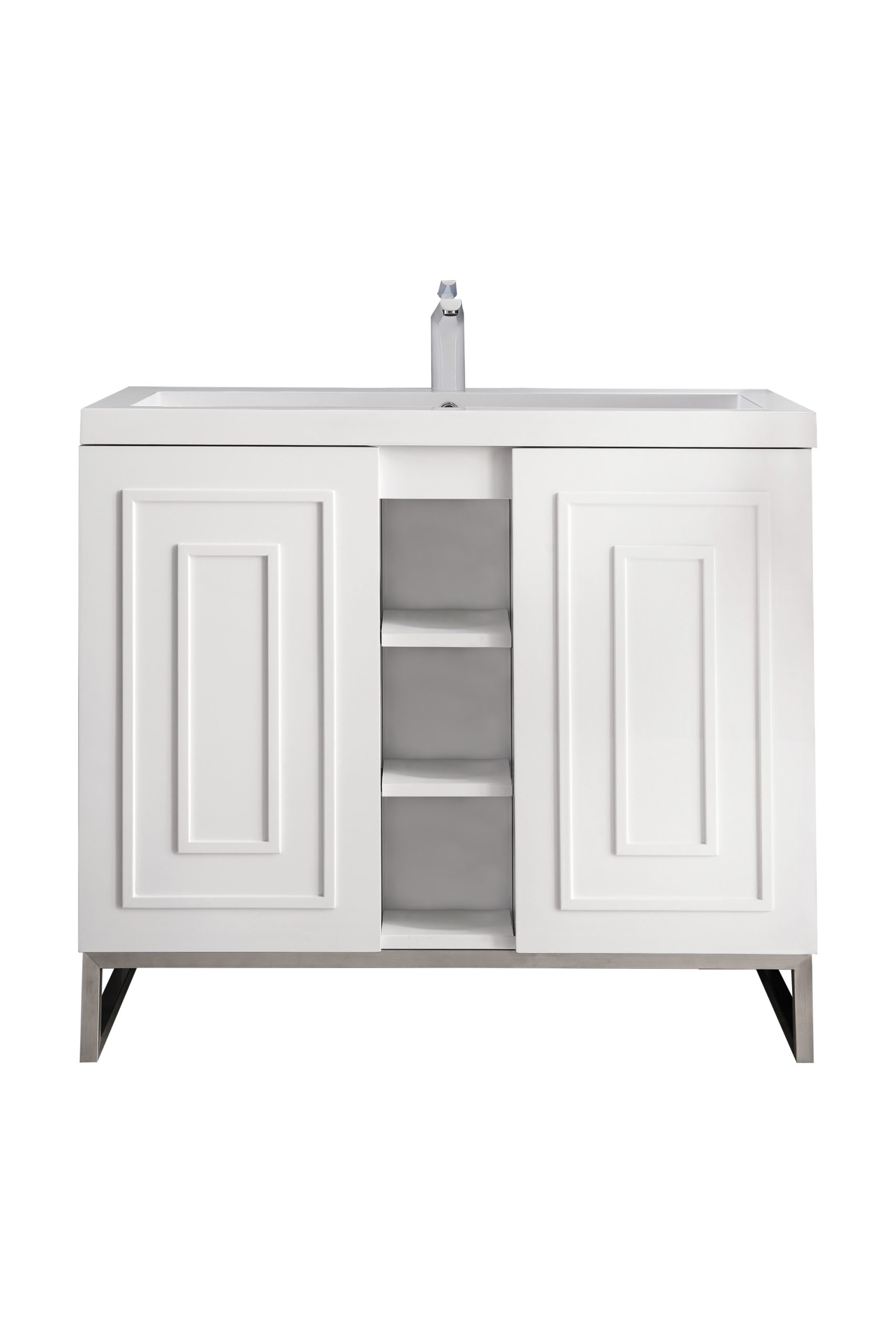 Alicante 39.5″ Bathroom Vanity, Glossy White, Brushed Nickel