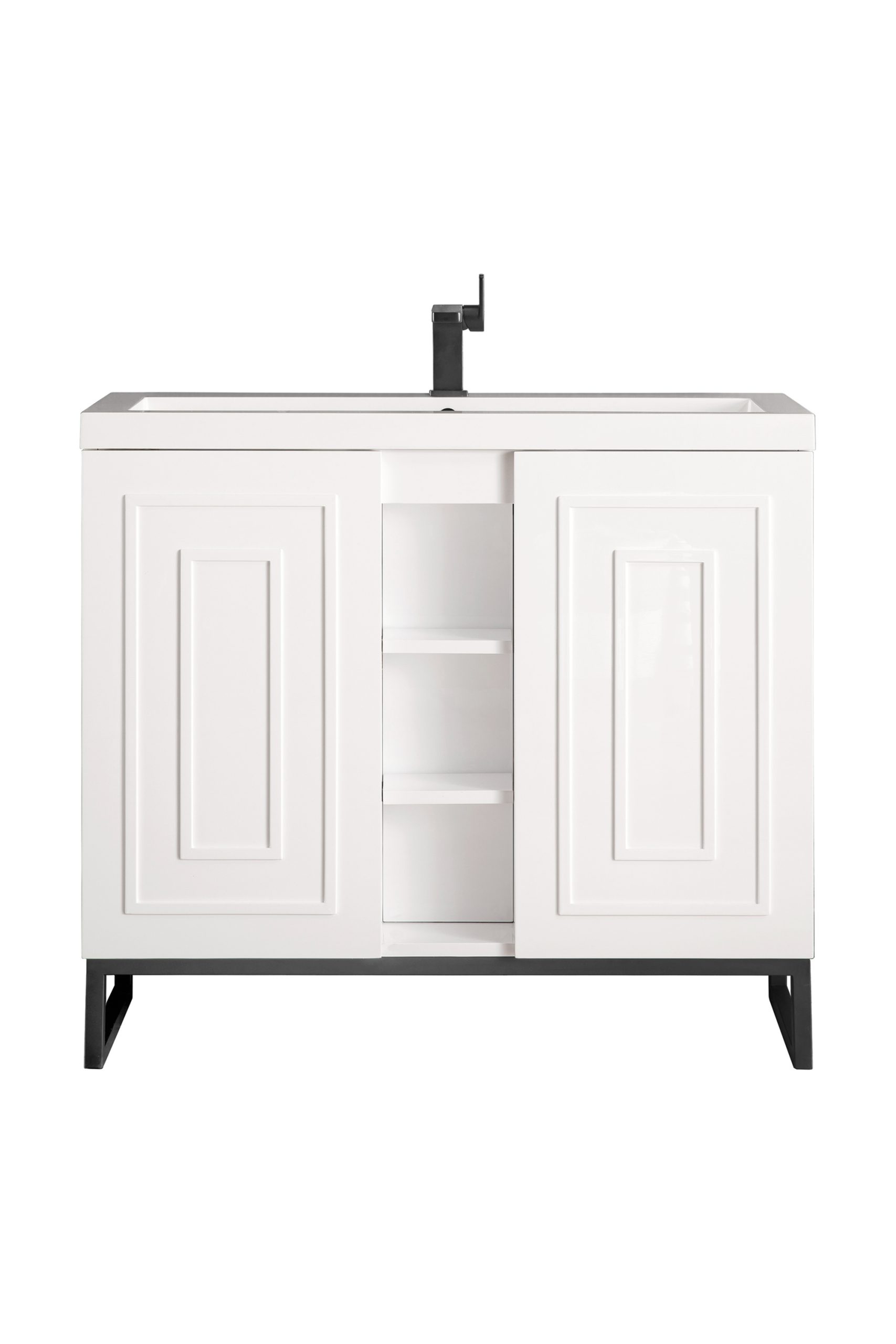 Alicante 39.5″ Bathroom Vanity, Glossy White, Matte Black