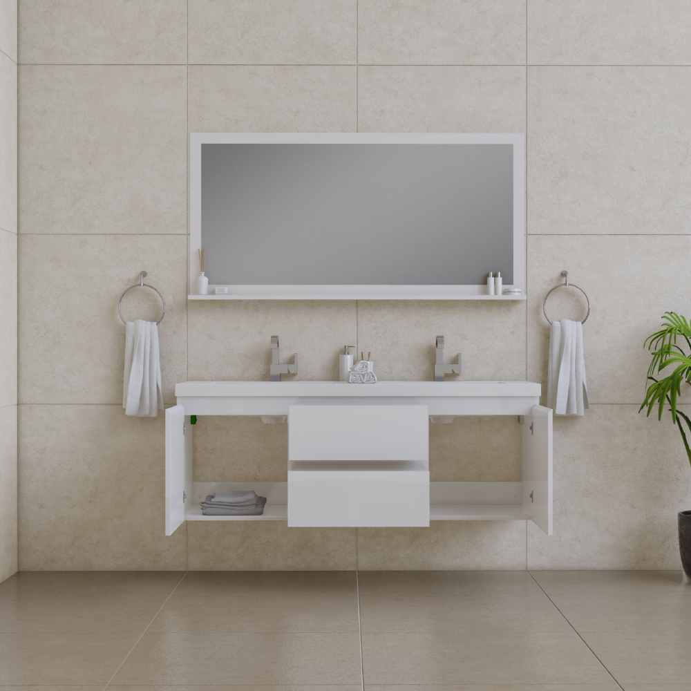 Bring modern sophistication to your bathroom with the Paterno 60 Inch Double Wall Mount Bathroom Vanity in Glossy White. Designed for contemporary elegance and everyday functionality, this floating vanity enhances space while offering generous storage for a clutter-free look. Perfect for those who value style, convenience, and contemporary design, the Paterno 60″ Double Wall Mount Vanity is the ultimate bathroom upgrade. Shop now for a sleek, modern transformation.