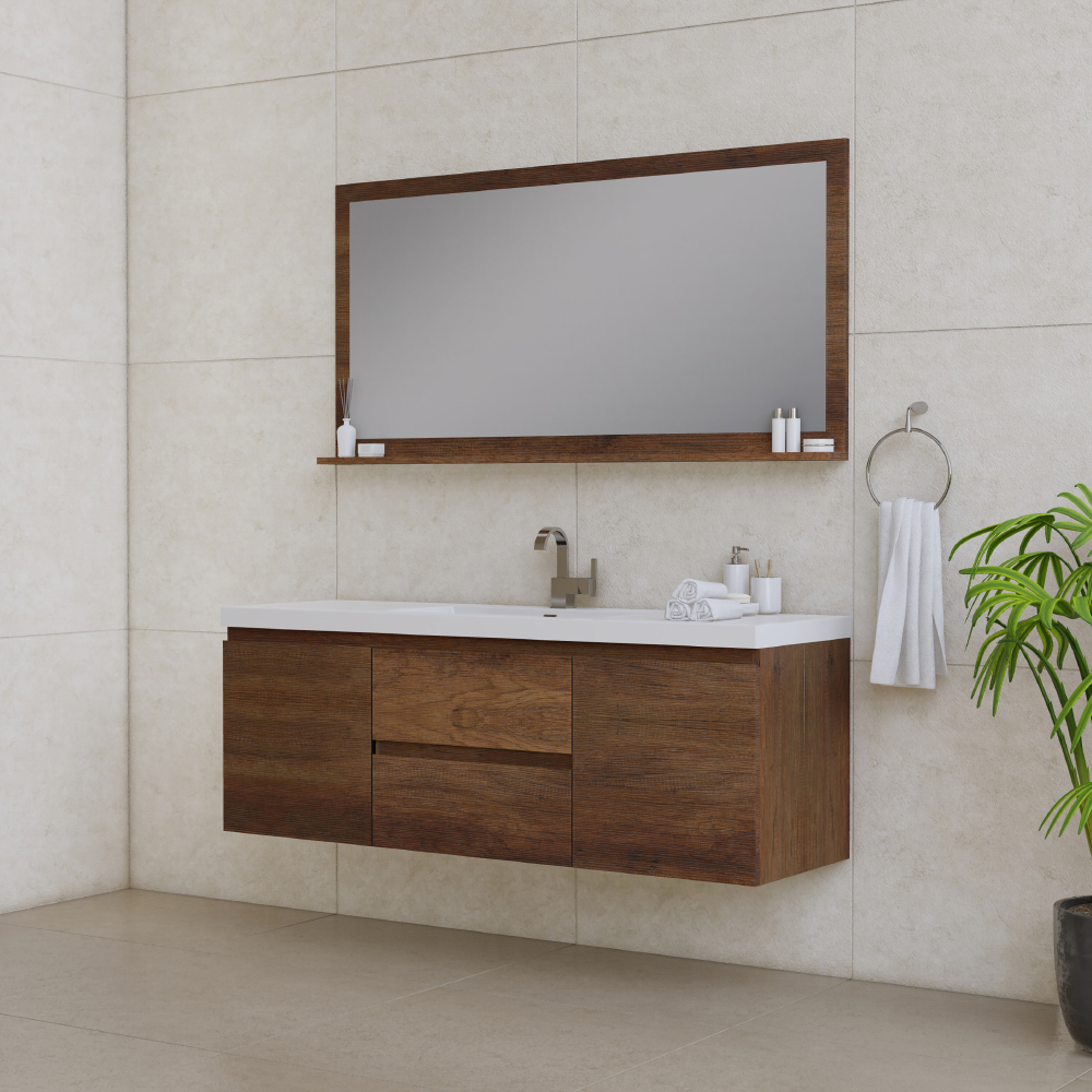 Bring warmth and modern elegance to your bathroom with the Paterno 60 Inch Single Wall Mount Bathroom Vanity in Rosewood. Designed for contemporary spaces, this floating vanity offers a sleek, space-saving design while providing ample storage to keep your essentials organized. The rich Rosewood finish adds a touch of natural sophistication, making it a stylish centerpiece for any bathroom. Perfect for those who appreciate sleek aesthetics and functional design, the Paterno 60 inch Wall Mount Vanity in Rosewood transforms your bathroom into a stylish, clutter-free retreat. Upgrade your space today!