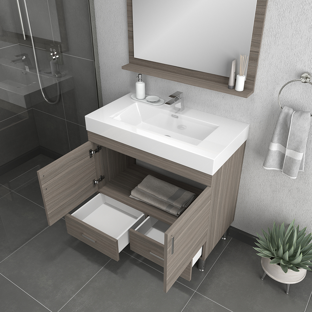 Ripley 36 inch modern bathroom vanity in gray combines the functionality of modern look with classic charm.