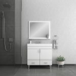 Ripley 36 inch modern bathroom vanity in glossy white offers the perfect solution for a bathroom. This beautiful modern freestanding vanity combines the functionality of a modern look with classic charm.  Conveniently located two soft-closing large drawers and two soft-closing doors provide plenty of storage as a space-saver. With its modern design, high-end finish, and functional storage, the Ripley 36 inch Vanity is the perfect choice for adding elegance and efficiency to your bathroom.