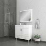 Ripley 36 inch modern bathroom vanity in glossy white offers the perfect solution for a bathroom. Conveniently located two soft-closing large drawers and two soft-closing doors provide plenty of storage as a space-saver.