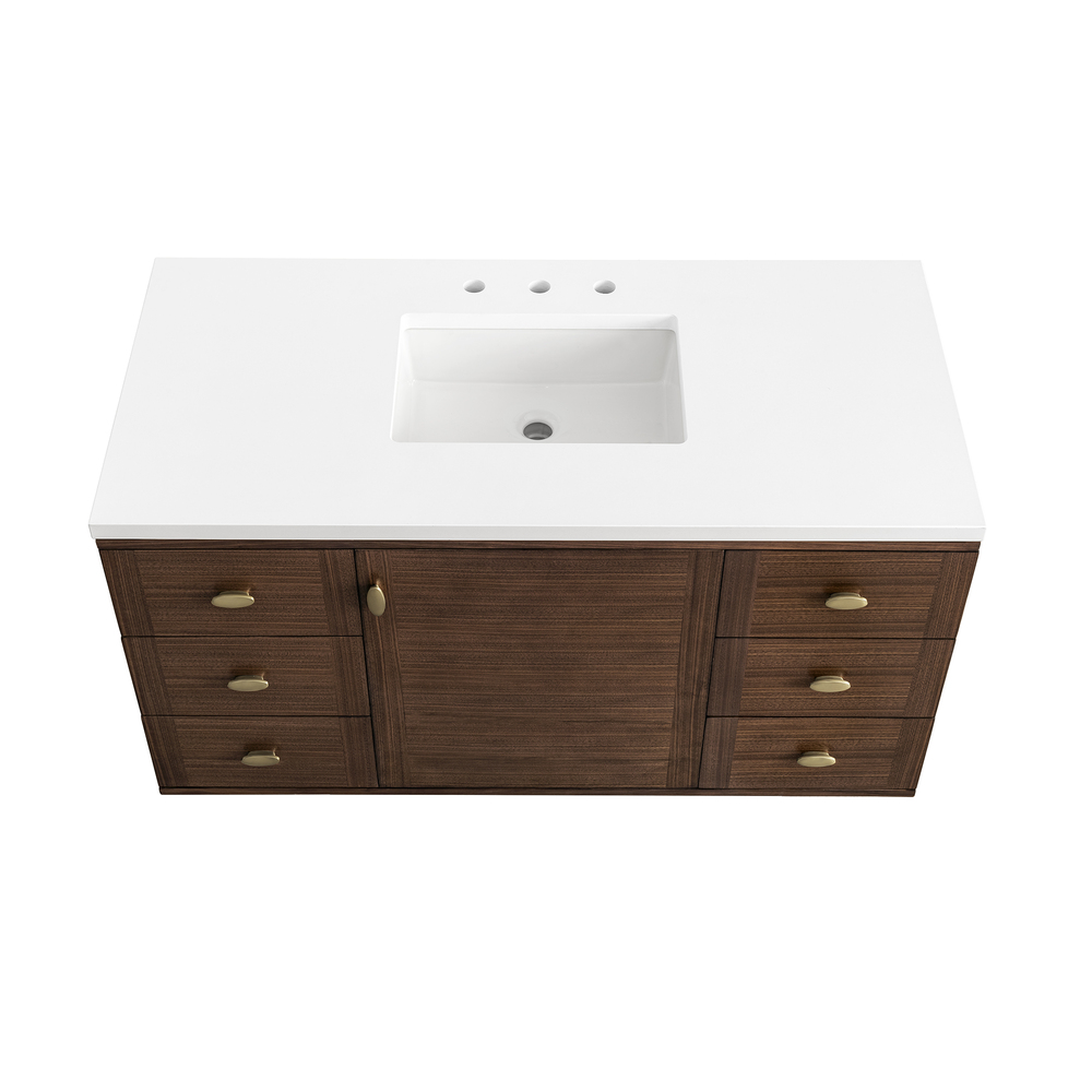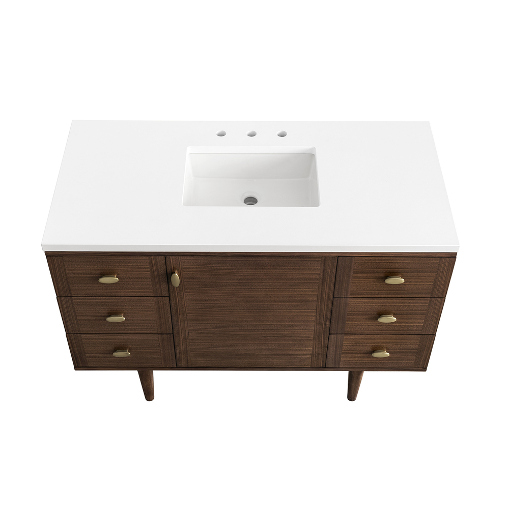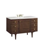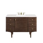 Amberly 48″ Single Vanity In Mid-Century Walnut With White Zeus Top