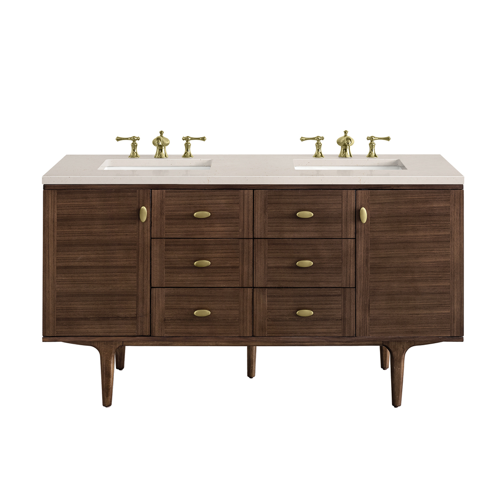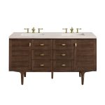 Amberly 60″ Double Vanity In Mid-Century Walnut With Eternal Marfil Top