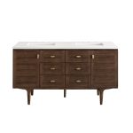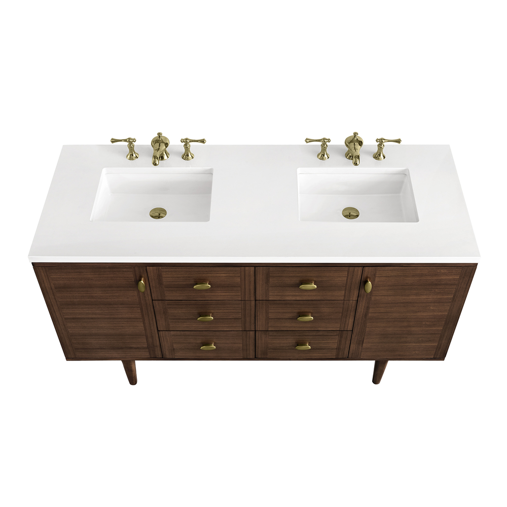 Amberly 60″ Double Vanity In Mid-Century Walnut With White Zeus Top