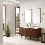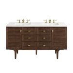 Amberly 60″ Double Vanity Mid-Century Walnut With Arctic Fall Top