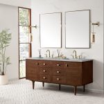 Amberly 72″ Double Vanity In Mid-Century Walnut With Arctic Fall Top