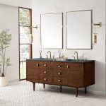 Amberly 72″ Double Vanity In Mid-Century Walnut With Charcoal Soapstone Top
