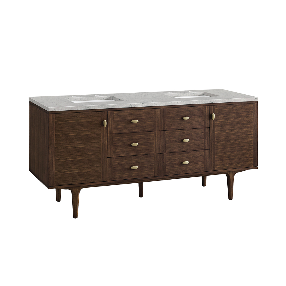 Amberly 72″ Double Vanity In Mid-Century Walnut With Eternal Jasmine Pearl Top