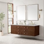 Amberly 60″ Double Vanity Mid-Century Walnut With Arctic Fall Top