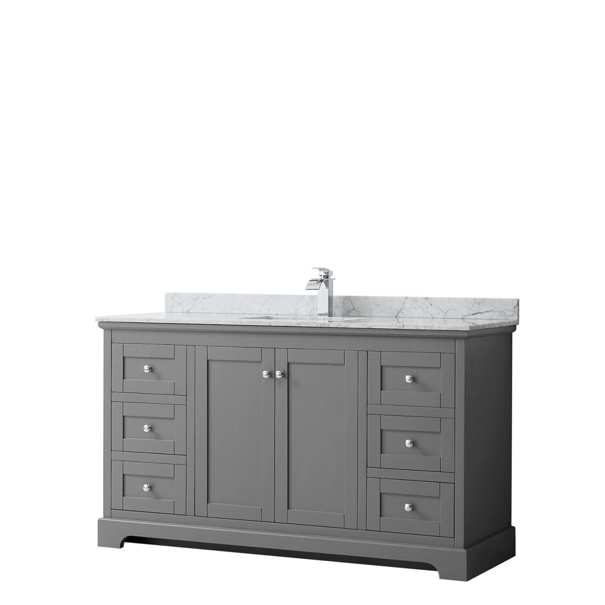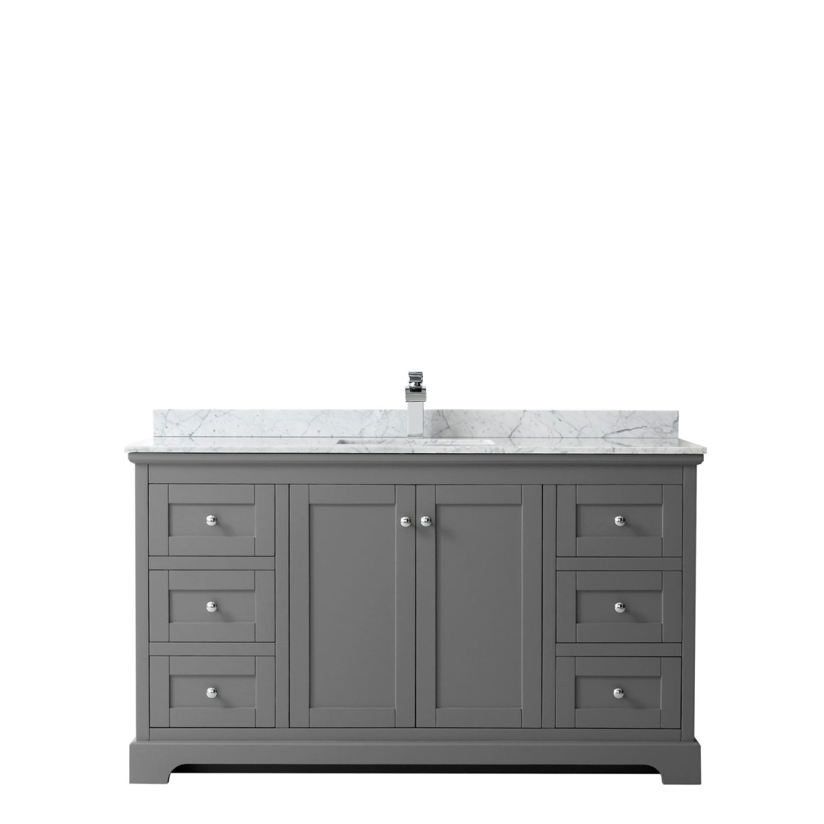 Avery 60 Inch Single Bathroom Vanity With Carrara Marble Top in Dark Gray