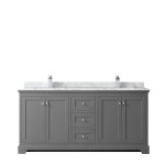 Avery 72 Inch Double Bathroom Vanity With Carrara Marble Top in Dark Gray