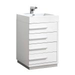 Barcelona 30 inch bathroom vanity’s pure and modern design is perfect for organizing all of your essentials with the storage space it provides. Built with a strikingly innovative design, this free standing vanity is enhanced with four soft closing drawers. The set includes the vanity base and acrylic integrated counter top.