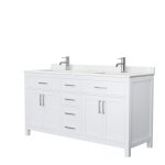 Beckett 66 Inch Double Bathroom Vanity in White With Carrara Cultured Marble Top