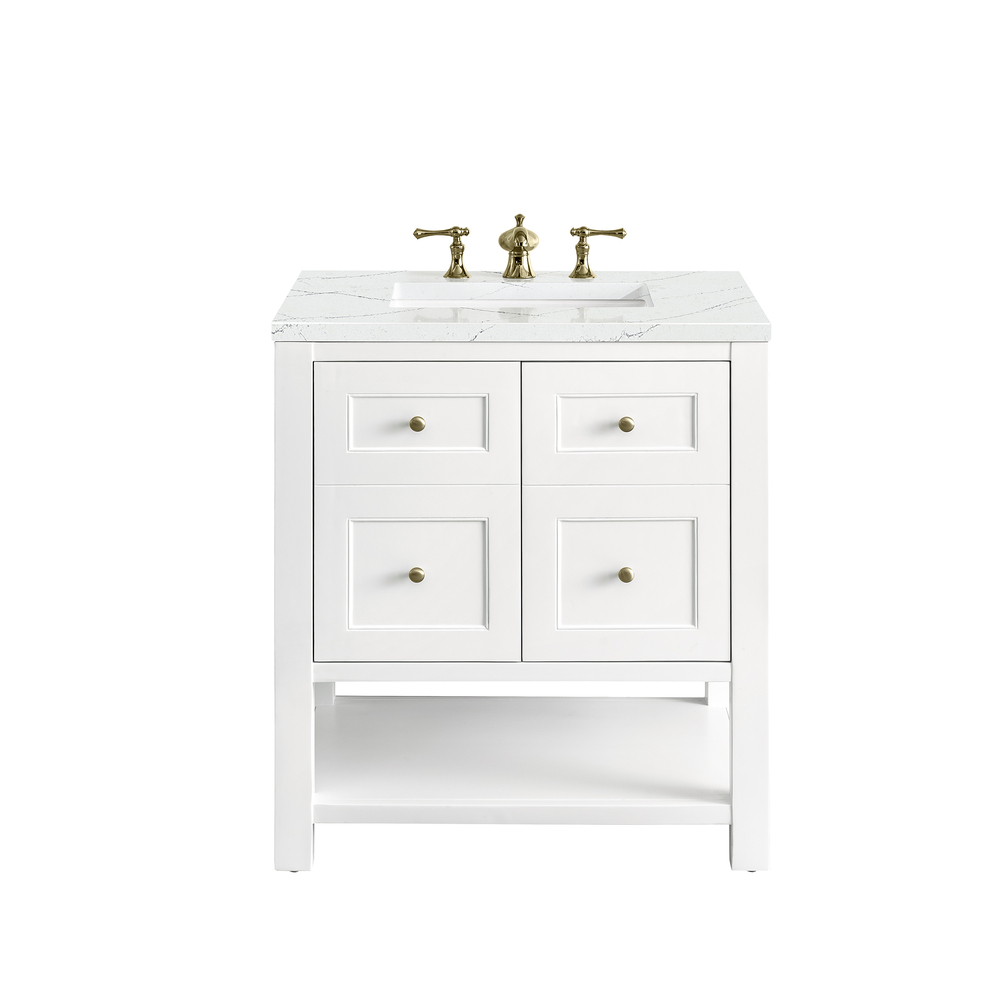 Breckenridge 30″ Bathroom Vanity In Bright White With Ethereal Noctis Top
