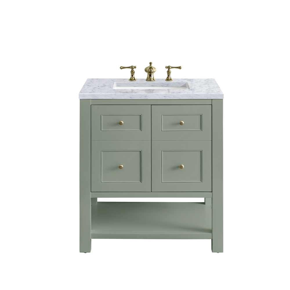 Breckenridge 30″ Bathroom Vanity In Smokey Celadon With Carrara Marble Top
