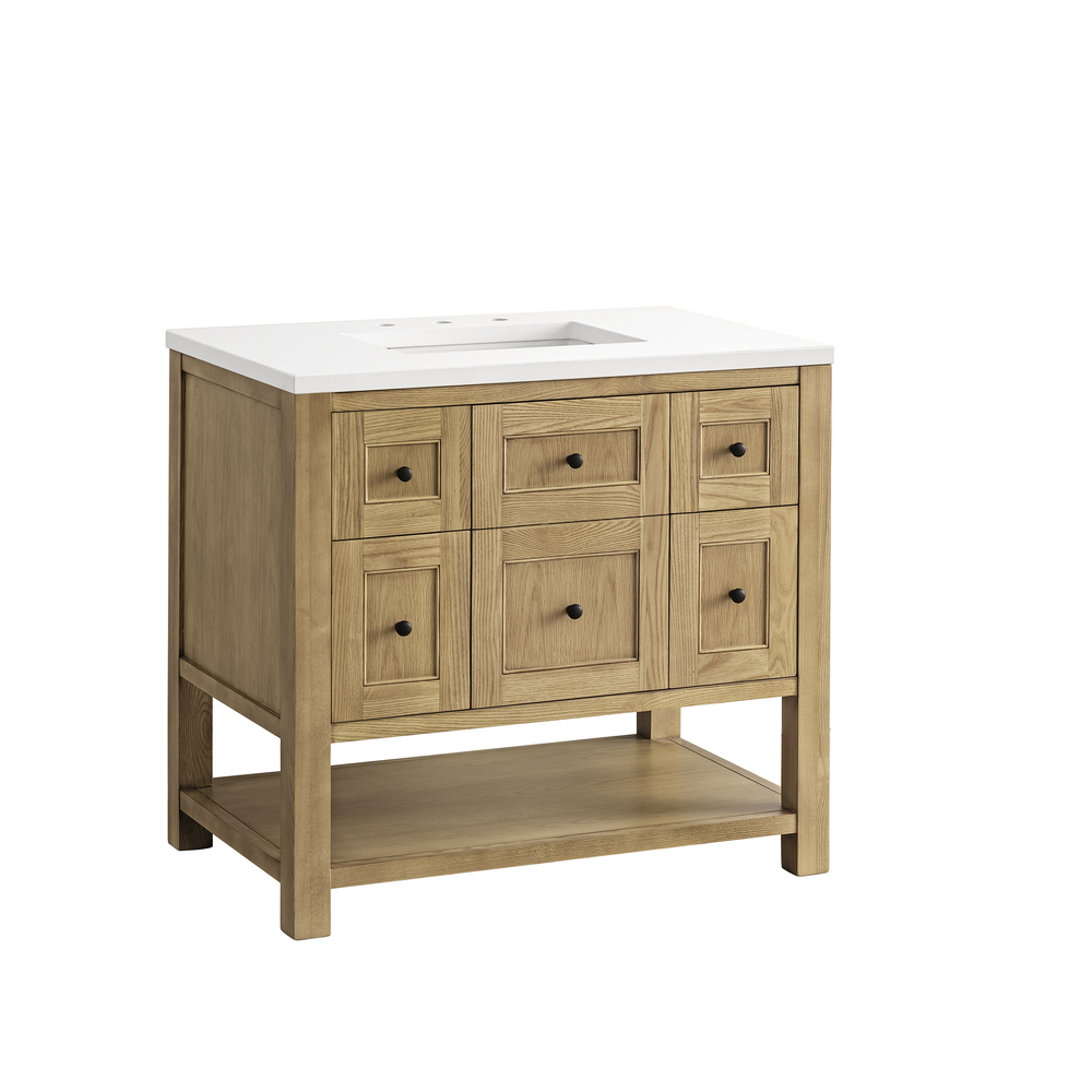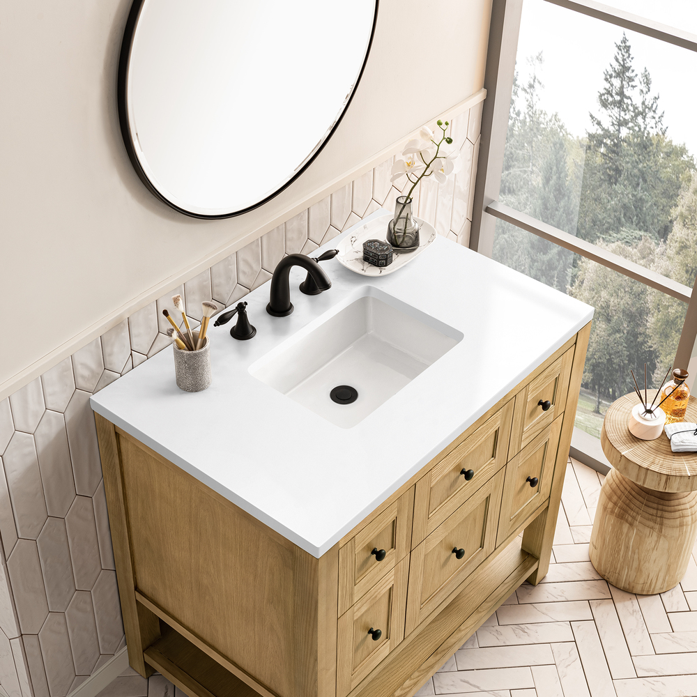Breckenridge 36″ Bathroom Vanity In Natural Light Oak With White Zeus Top