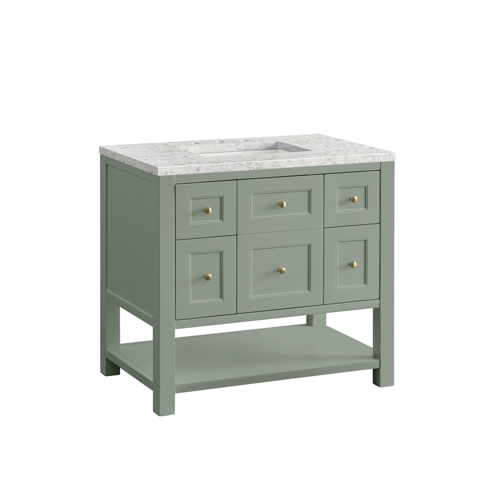 Breckenridge 36″ Bathroom Vanity In Smokey Celadon With Eternal Jasmine Pearl Top
