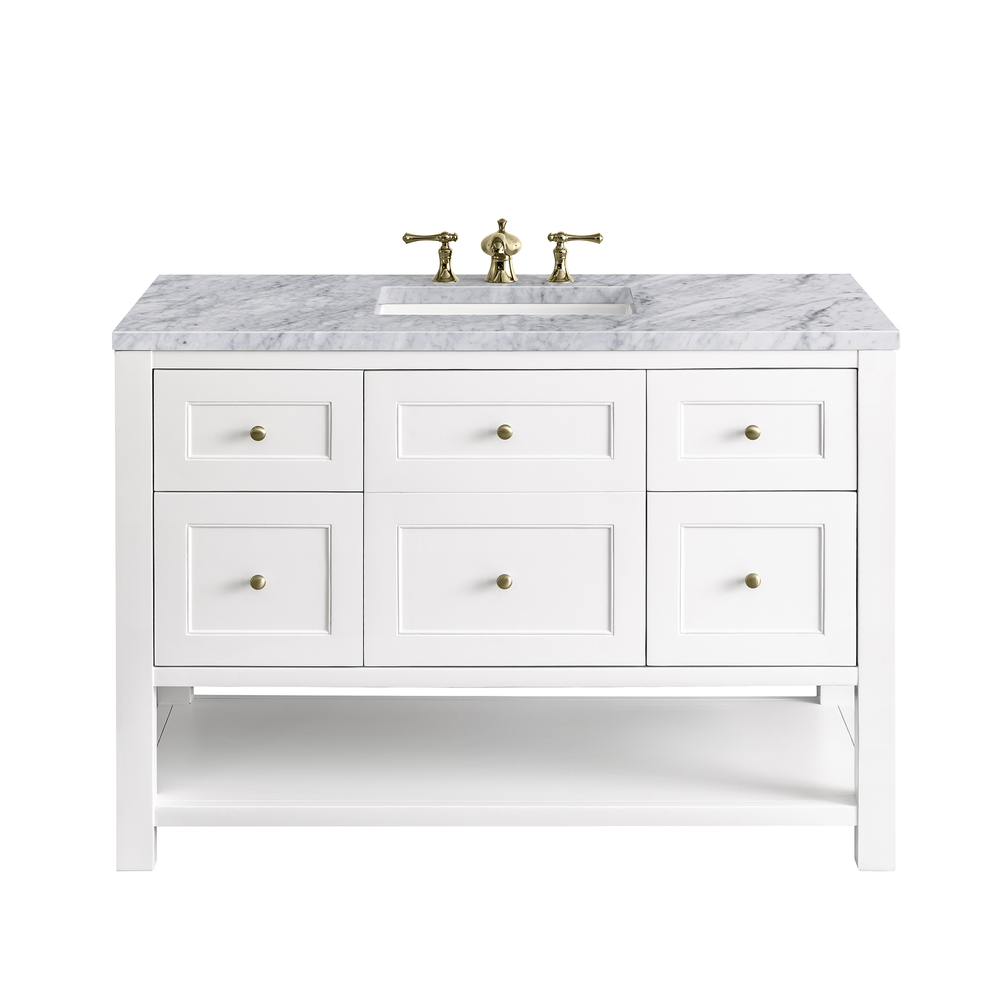 Breckenridge 48″ Bathroom Vanity In Bright White With Carrara Marble Top