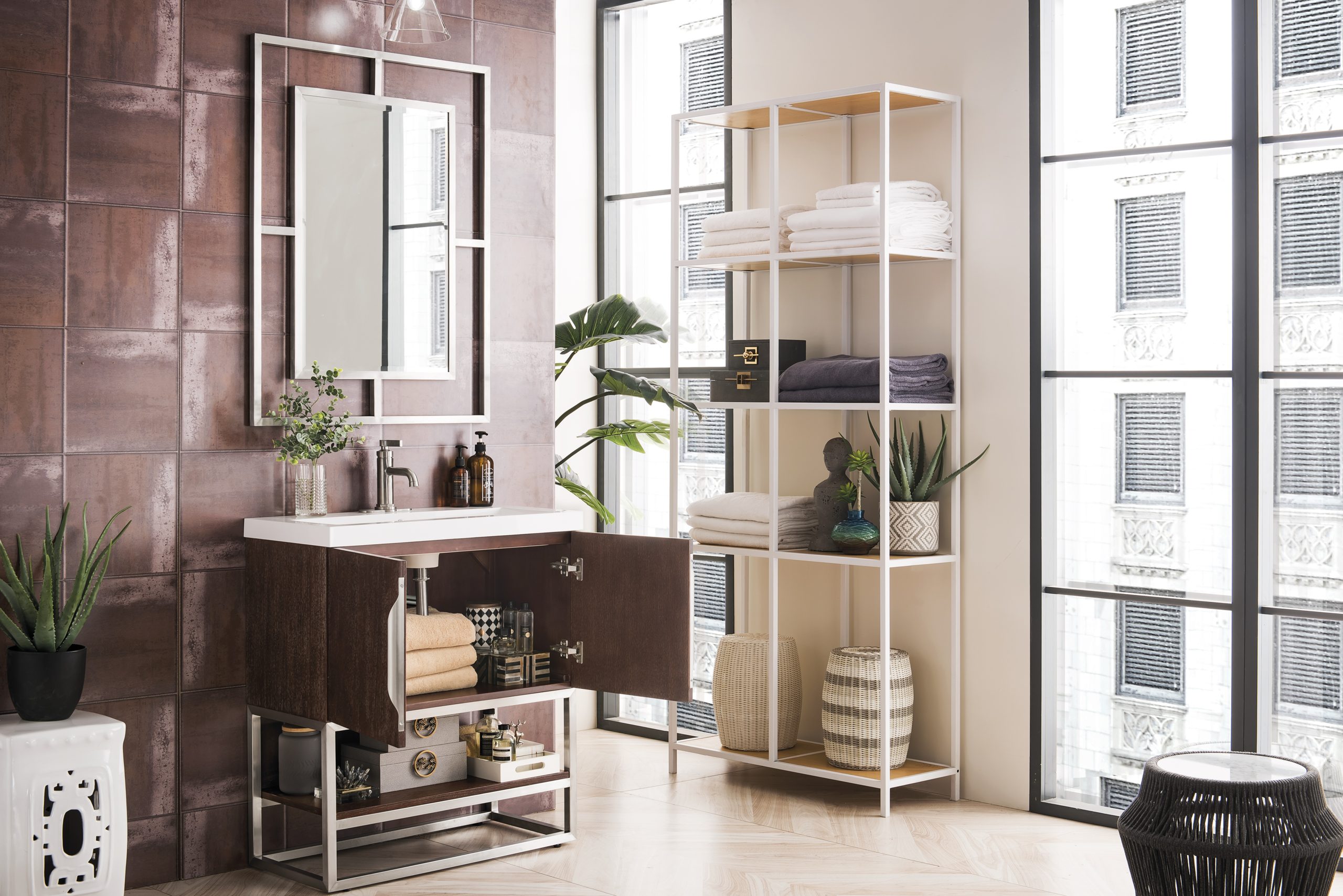 Columbia 31.5″ Bathroom Vanity, Coffee Oak, Brushed Nickel