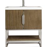Columbia 31.5″ Bathroom Vanity, Latte Oak, Brushed Nickel