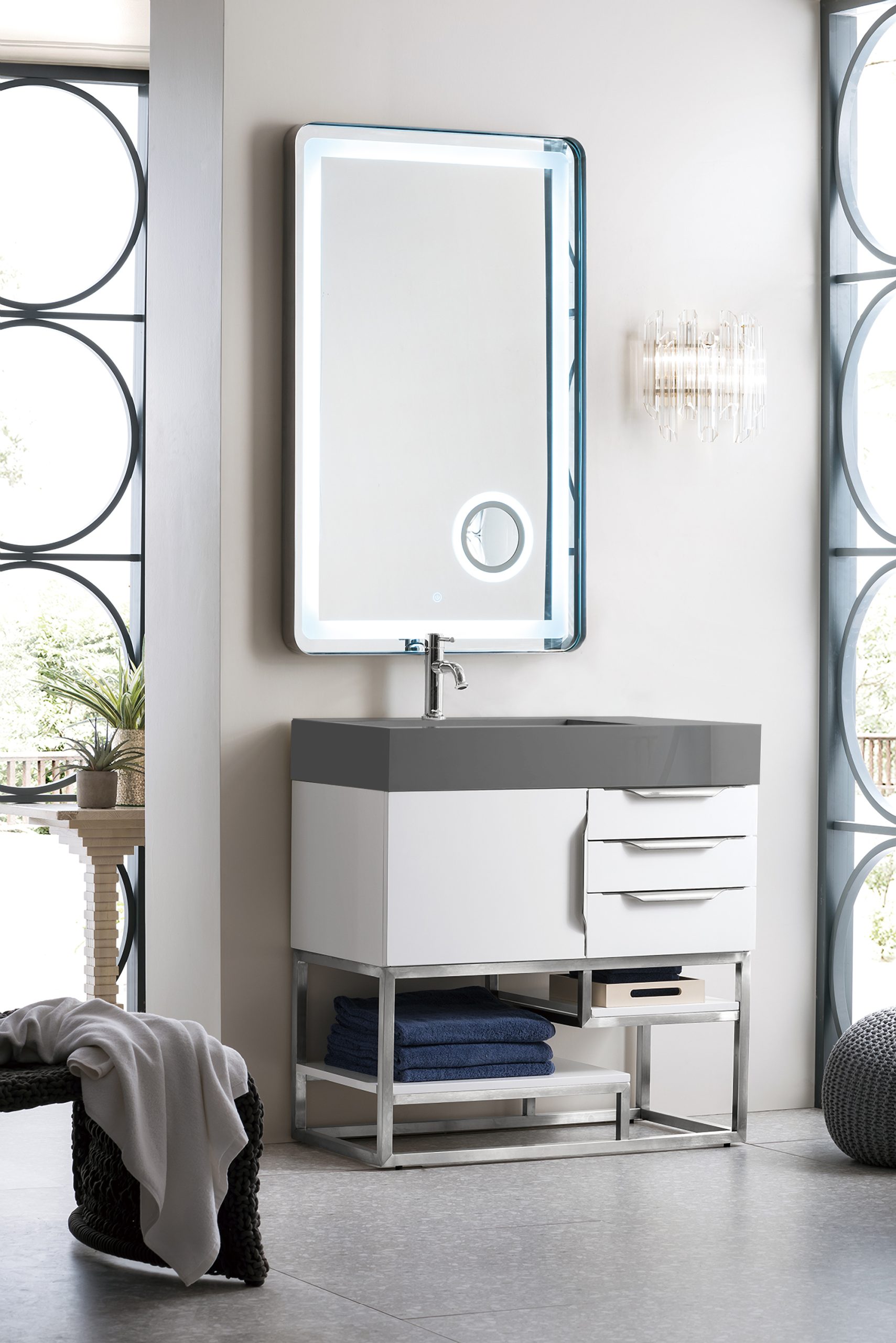 Columbia 36″ Single Bathroom Vanity, Glossy White, Brushed Nickel