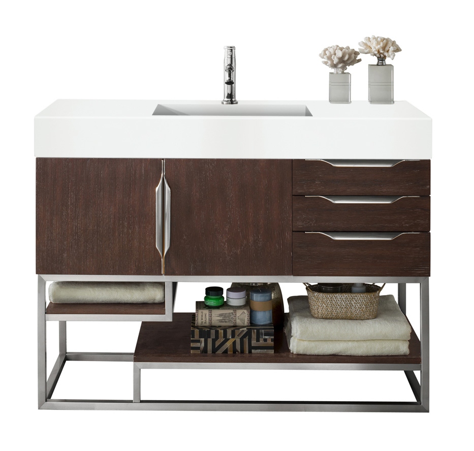 Columbia 48″ Single Bathroom Vanity, Coffee Oak, Brushed Nickel
