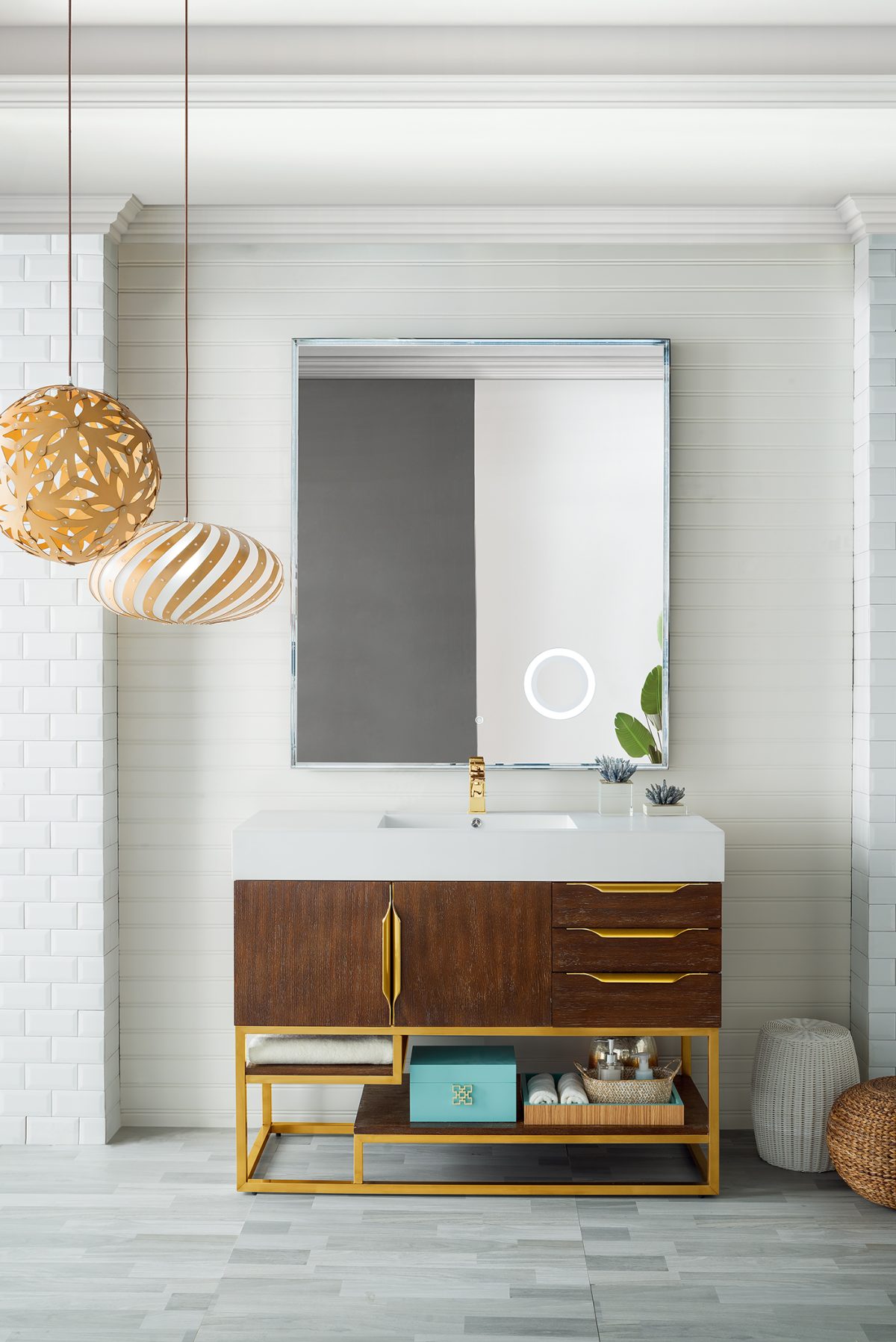 Columbia 48″ Single Bathroom Vanity, Coffee Oak, Radiant Gold