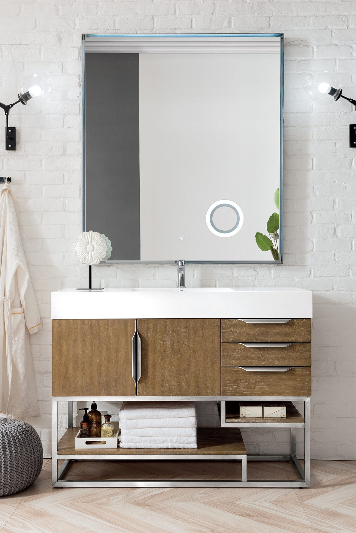 Columbia 48″ Single Bathroom Vanity, Latte Oak, Brushed Nickel