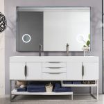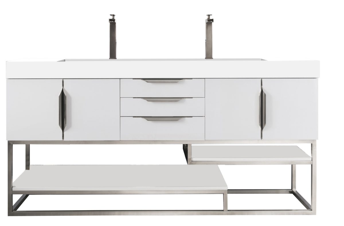 Columbia 72″ Double Bathroom Vanity, Glossy White, Brushed Nickel