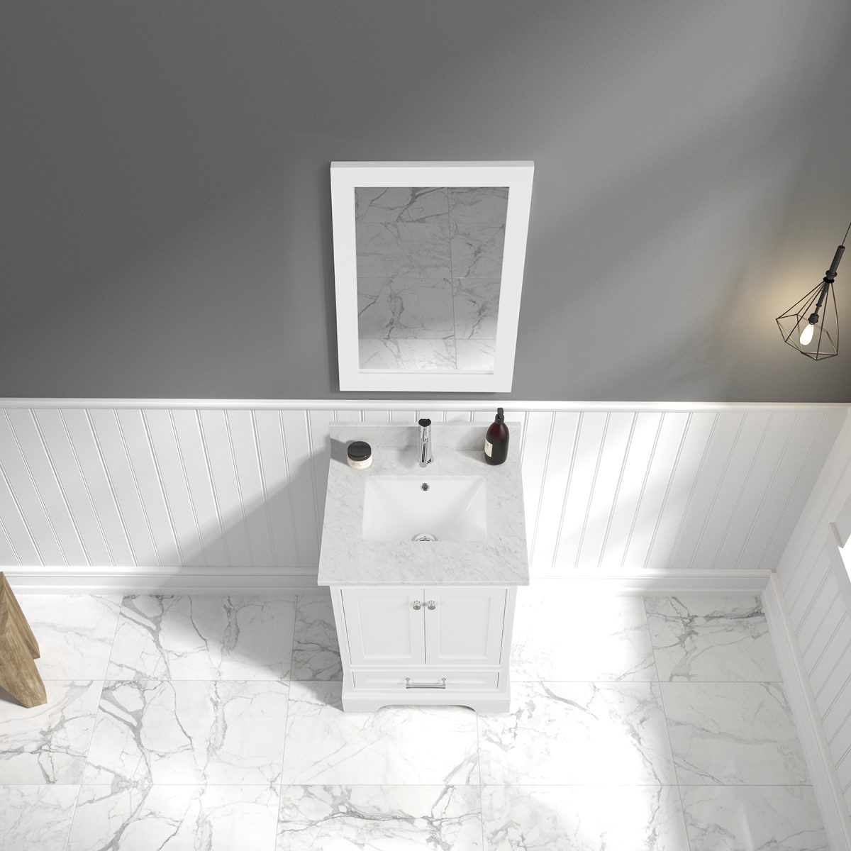 Copenhagen 24 inch Bathroom Vanity in Matte White with Carrara Marble Top
