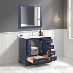Copenhagen 36 inch Bathroom Vanity in Navy Blue with Carrara White Marble will bring a beautiful, crisp transitional look to your bathroom.