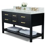 Elizabeth 60 in. Bath Vanity Set in Black Onyx with Italian Carrara White Marble Vanity top and White Undermount Basin with Gold Hardware