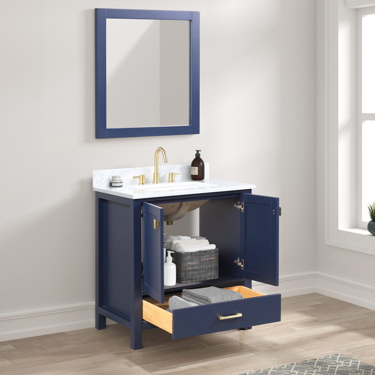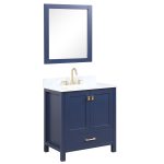 Geneva 30″ Bathroom Vanity in Navy Blue with Carrara Marble Countertop