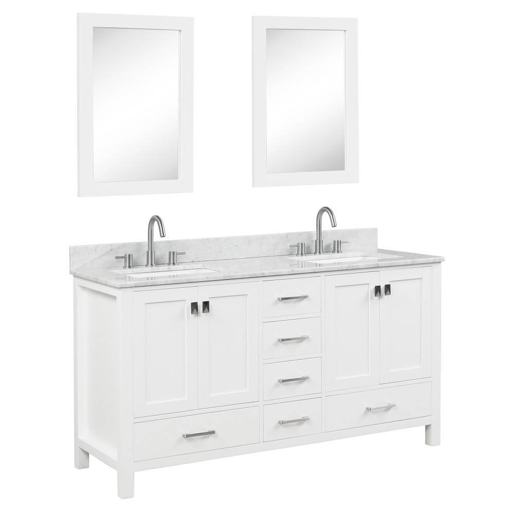 Geneva 60 inch bathroom Matte White with Carrara Marble Countertop creates a beautiful and sleek bathroom for your transitional space.