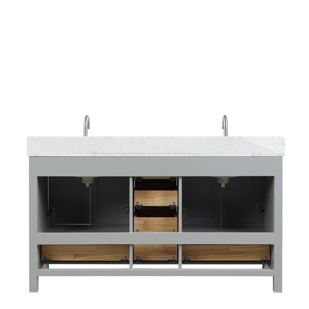 Geneva 60 inch Bathroom Vanity Metal Gray with Carrara Marble Countertop