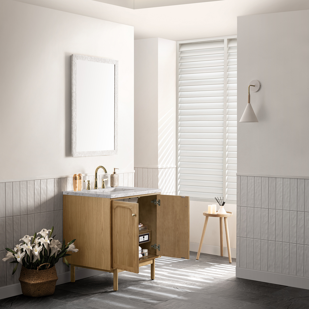 Laurent 30″ Bathroom Vanity In Light Natural Oak With Eternal Jasmine Pearl Top
