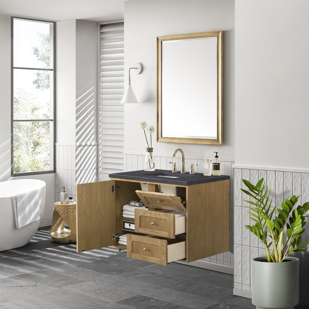 Laurent 36″ Bathroom Vanity In Light Natural Oak With Charcoal Soapstone Top