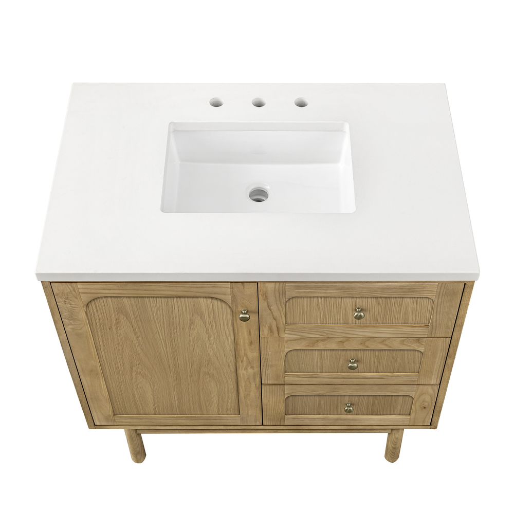 Laurent 36″ Bathroom Vanity In Light Natural Oak With White Zeus Top
