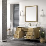 With a design that evokes unpretentious Boho Chic charm, the Laurent bathroom vanity collection features picture frame detailing with unexpected soft curves. The Light Natural Oak finish over cathedral grain ash veneers creates modern rustic appeal. This vanity may be free-standing, or floating.
