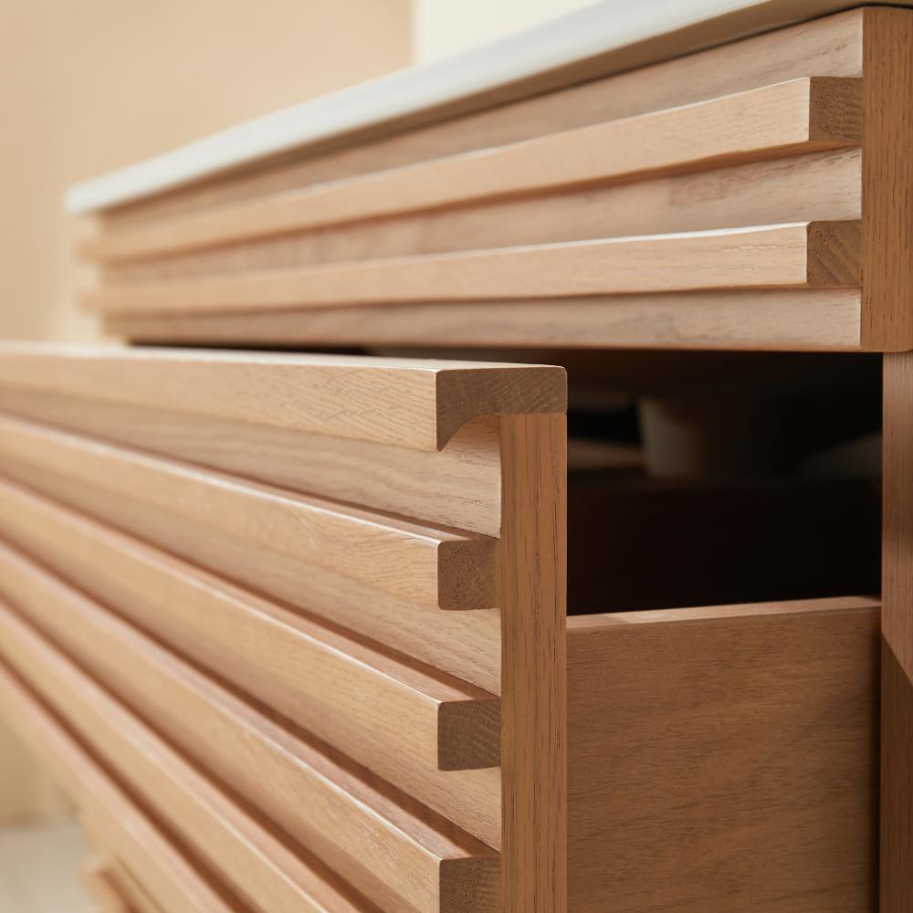 2 drawers with U-shaped cutout for plumbing