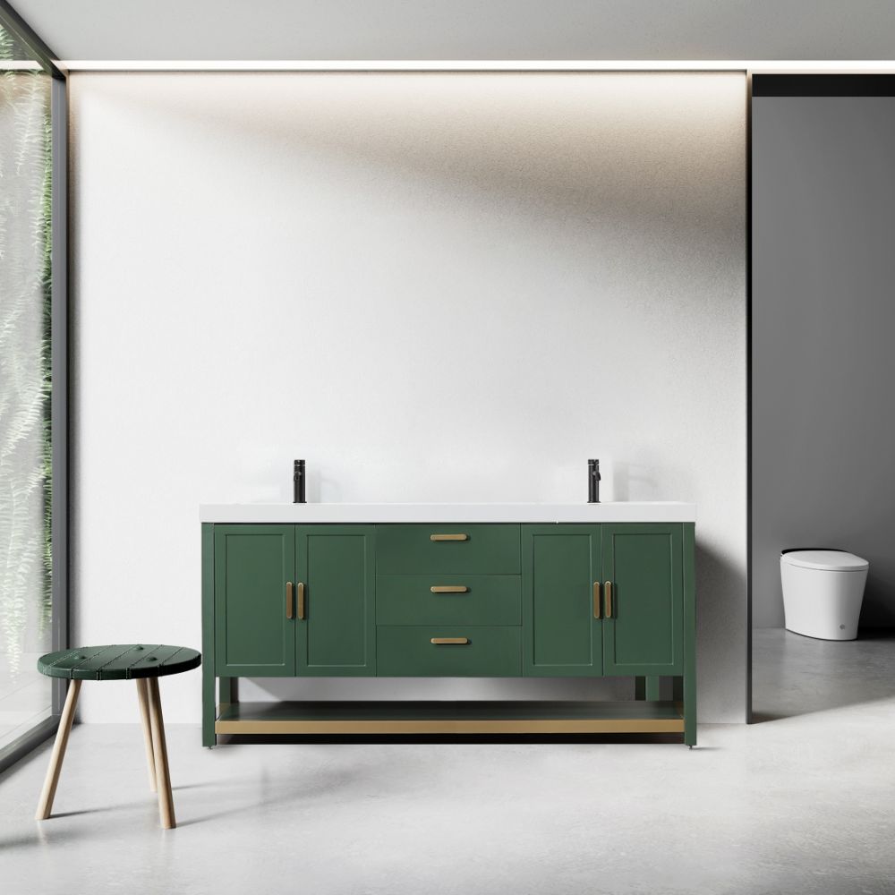 Winchester 72 inch Freestanding Double Bathroom Vanity With White Top – Forest Green