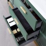 Winchester 72 inch Freestanding Double Bathroom Vanity With White Top in Forest Green is a classic-inspired vanity that will bring a sense of organic luxury to your bath space. Three drawers and two cabinets on both sides allow for extensive storage. This open bottom vanity is offset by elegant, gold-toned handles. The entire piece is topped off with a luxurious Black Marquina Quartz countertop and an under-mount sink. Winchester collection gives its users a feel of warm, contemporary sophistication.