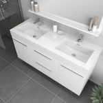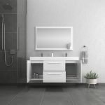 Elevate your bathroom with the Ripley 60 Inch Wall-Mounted Double Bathroom Vanity in Glossy White, a perfect combination of sleek modern design and practical functionality. Designed for contemporary spaces, this floating vanity creates a clean, open look while offering ample storage and dual sinks for ultimate convenience. With its sleek glossy finish, floating design, and generous storage, the Ripley 60-Inch Wall-Mounted Double Vanity is the perfect choice for those looking to achieve a modern, minimalist aesthetic without sacrificing functionality.