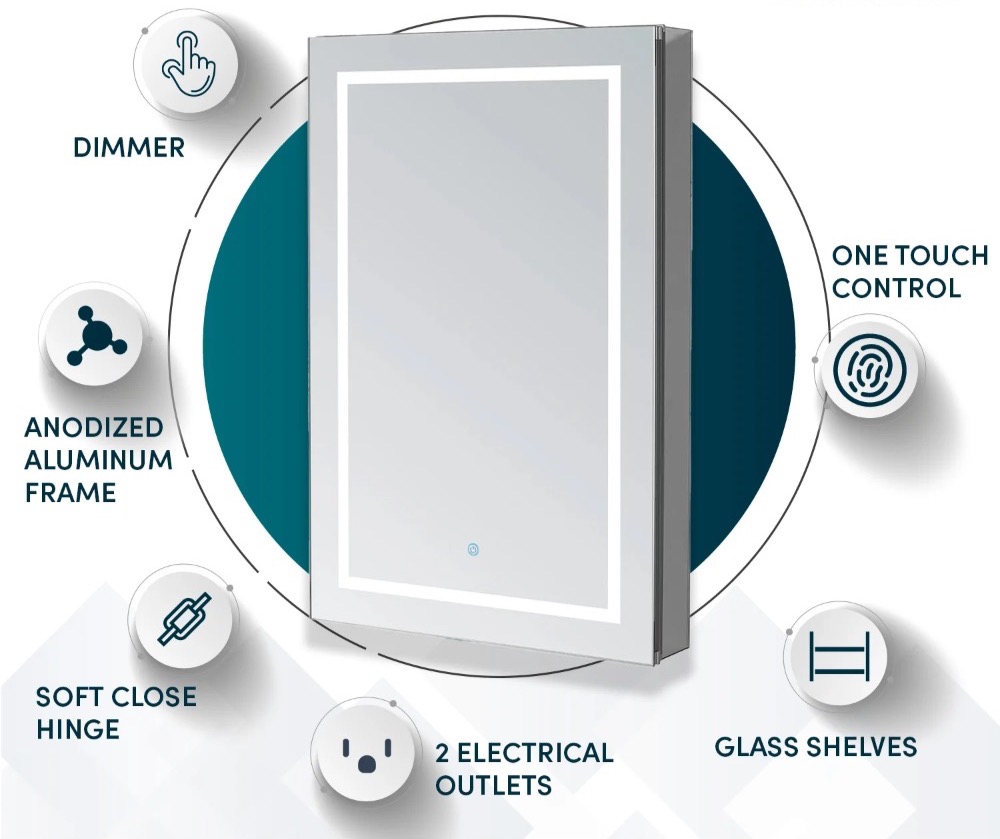 A built-in anti-fog defogger system ensures a crystal-clear reflection after showers, while soft-touch sensor controls make it easy to operate lighting and defogging functions. Inside, you’ll find a mirrored interior with adjustable glass shelves that provide organized storage for all your bathroom essentials. The cabinet offers flexible installation as either recessed or surface mount, making it suitable for a variety of bathroom layouts.